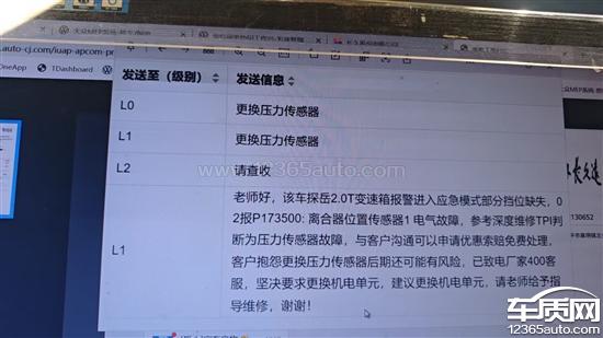 本人是2019款大众探岳330TSI车主,行驶里程5万7千公里,车辆于2026年2月11日晚出现变速器紧急运行模式,可以继续行驶故障提示。 到4S店检测,故障码为P173500(离合器位置传感器1电气故障)。该故障是大众DQ381湿式双离合变速箱机电单元(阀体总成)通病,行业内及大量车主反馈:只更换传感器无法根治,短则数月就会复发,车辆在行驶中会出现失速、顿挫、动力中断,严重影响行车安全。我要求4S店申请更换阀体总成,但一汽大众厂家直接驳回申请,只允许更换传感器。 厂家以成本为优先,不顾车主用车安全与长期使用需求。如果在高速上突然发生这种故障,车辆瞬间失速,那人身安全无法保证。现正式投诉: 1.要求一汽大众重新审批,免费更换改进版全新阀体总成,彻底解决故障; 2.要求4S店及厂家正视产品缺陷,保障车主合法权益与行车安全。 另外,大众官方内部有相关技术通告,针对此类问题在特定条件下应予以免费更换总成。且已有众多车主通过投诉维权获得了免费更换TCU的服务,要求厂家“一视同仁”。