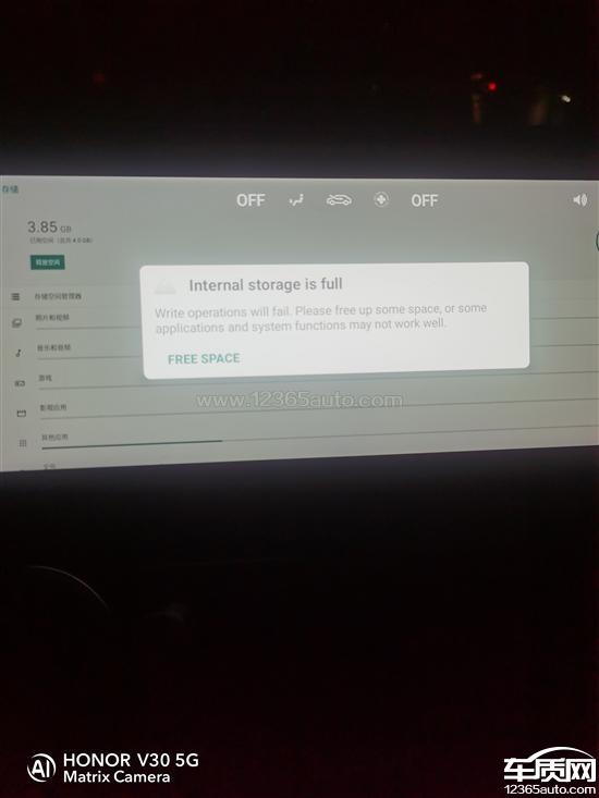 内存已满无法删除文件,恢复出厂设置亦无效,严重影响安全驾驶。