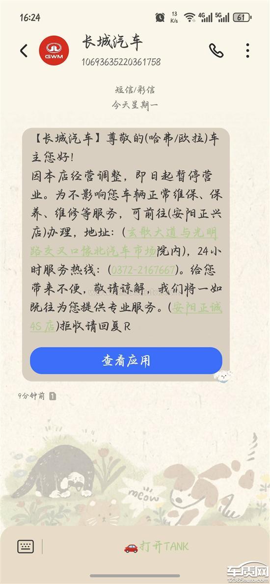 长城汽车厂家回复:您的信息我们已经收到,将尽快安排相关4S店与您联系处理,感谢您的支持与谅解。车辆使用中如需帮助,您可随时致电长城汽车客服热线:400-666-1990进行咨询、反馈,将竭诚为您服务!
