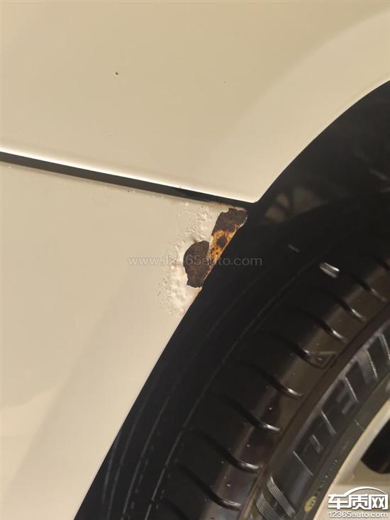 2023年发现后轮眉生锈,然后找4S店店家说超保了,要自费处理!后来后轮眉两面都生锈了,而且越来越严重,现在都蔓延到后门边框了,这属于材质问题。