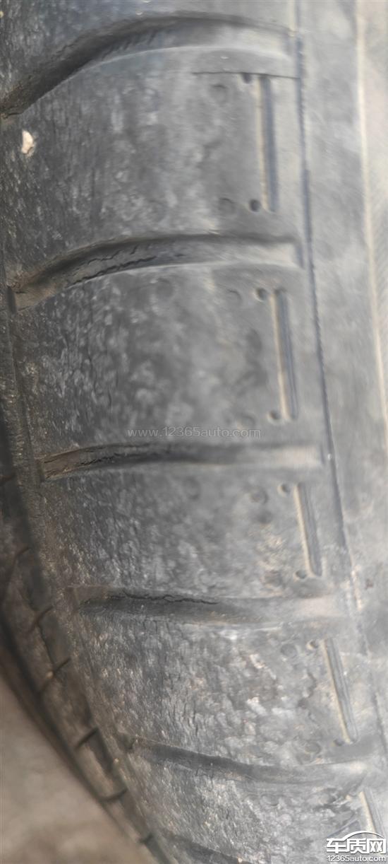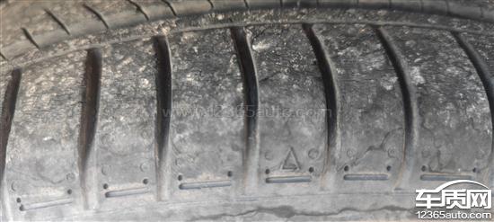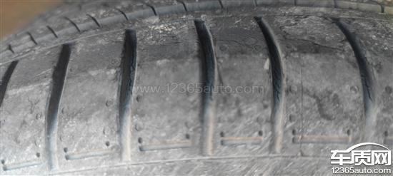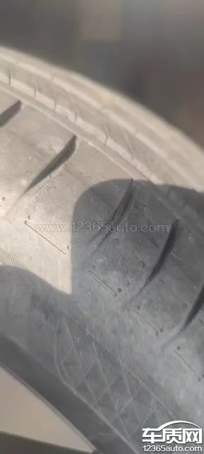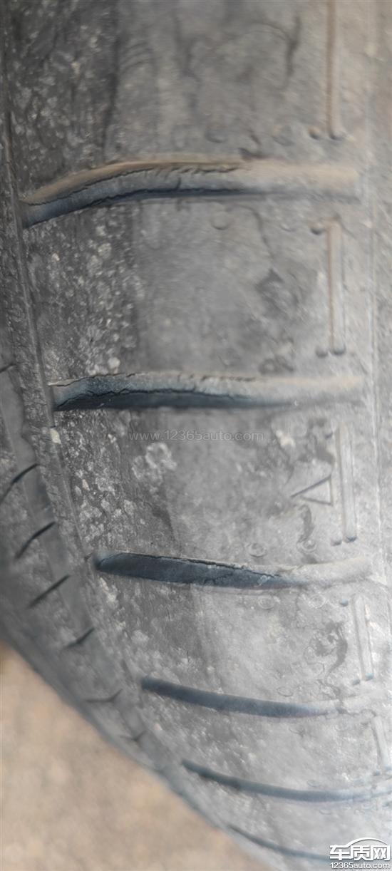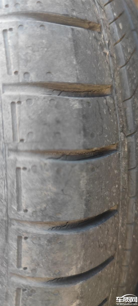 此车购买至今才两年零五个月,行驶13605公里,车的四个车轮的轮胎全部出现龟裂裂纹。