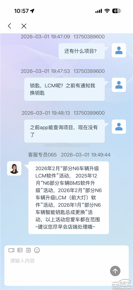 本人于2025年12月提了日产N6车型,提车后发现小问题不断,具体如下:主驾驶电动座椅按钮时常失灵,会突然提示未检测到钥匙。今年2月份,我从车友群中得知,厂家因生产批次存在质量问题而召回部分车辆,涉及钥匙、钥匙总成、驱动电机机油泵、外部灯光等部件。然而,涉及的部件包括钥匙总成、驱动电机油泵及大灯总成等。更换驱动电机油泵需要拆动车体、放出机油等复杂操作,对于一辆准新车而言,反复拆件会严重影响车辆保值率,同时也给我带来了时间上的损失。希望厂家能给出一个合理的处理方案。其次,我遭遇了不公正待遇。近期通过其他车友了解到,同款车型存在油泵召回更换、遥控钥匙质保升级、大灯问题处理等多项召回内容,且参与召回的车友均获得厂家积分补偿。本人于3月收到4s店电话通知到店召回活动有6000积分补偿,由于本人离茂南4s店比较远,有300多公里的路程,所以本人主动联系当地江门市江沙4S店召回项目有没有积分补偿,4S店明确表示未收到任何关于积分补偿的文件,拒绝给予积分补偿,这与其他已完成召回的车友待遇不一致,对我而言是区别对待。本人认为:1.厂家对日产n6零部件质量把控不严,导致新车就要召回。与车主责任无关,应当给予积分补偿2.同款车辆、同批次召回,其他车友均有积分补偿,4S店却以“没听说有补偿”为由拒绝补偿,属于区别对待消费者;3.油泵是车辆关键部件,因产品质量问题进行召回维修,理应给予相应补偿。现投诉要求:一、给予本人同等6000积分补偿;二、4S店及厂家正视问题,杜绝后续类似情况出现。