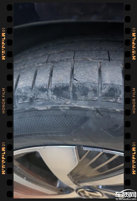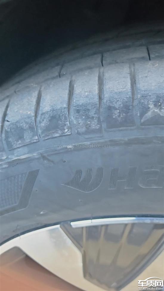 车辆无擦挂,但多处轮胎开裂,影响安全驾驶。该车主要用于城区通勤,4条轮胎均出现不同程度开裂,前轮尤为严重,望尽快处理,轮胎品牌为韩泰轮胎。