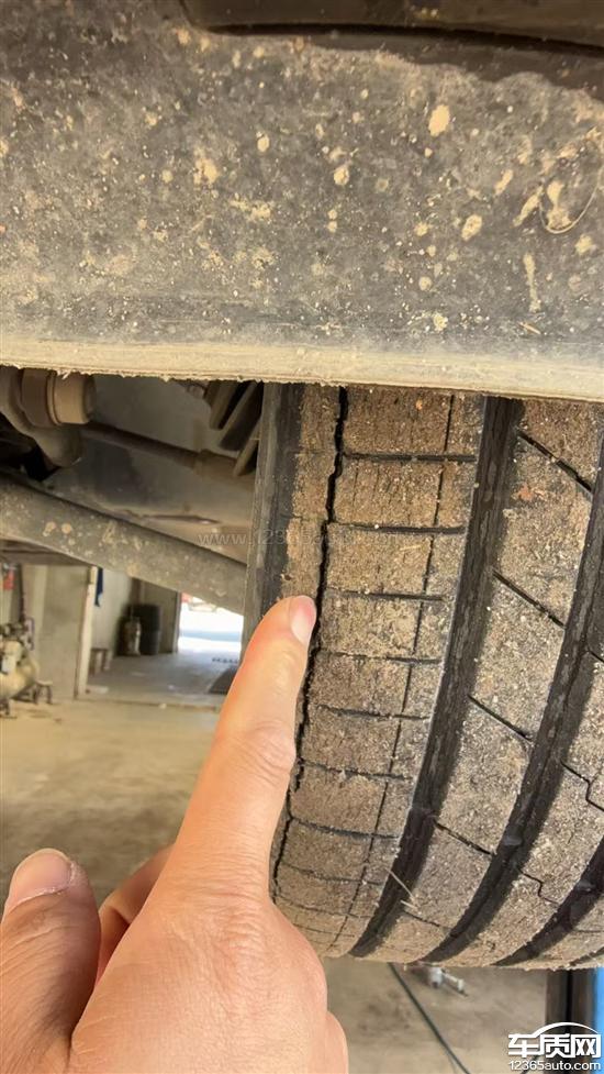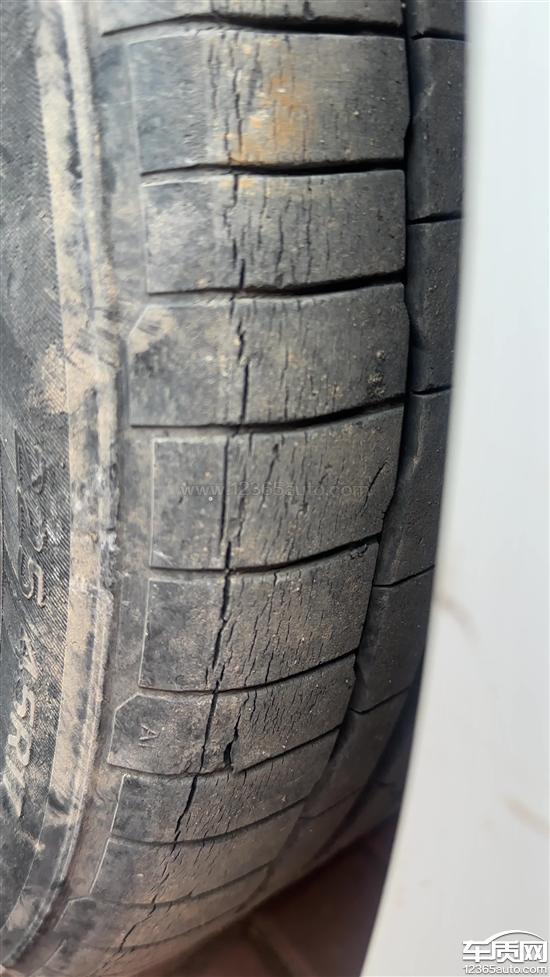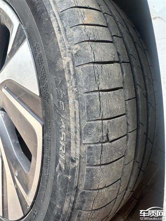 购车一年开裂。以为是正常损耗,没太在意,后期保养结果发现车胎内侧开裂特别严重。
